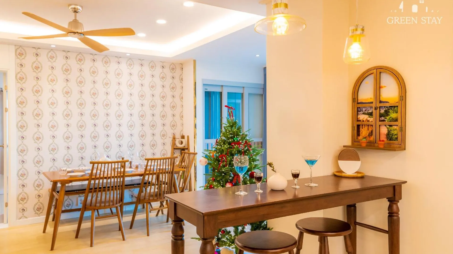 Die Haiyan Design House - Feel Like A Vacation At City verfügt über einen Balkon und eine Sitzecke und bietet Gästen einen Flachbildfernseher mit Satellitenkanälen. Zur Ausstattung des Badezimmers gehören eine getrennte Toilette und eine Dusche sowie ein Haartrockner und Handtücher.